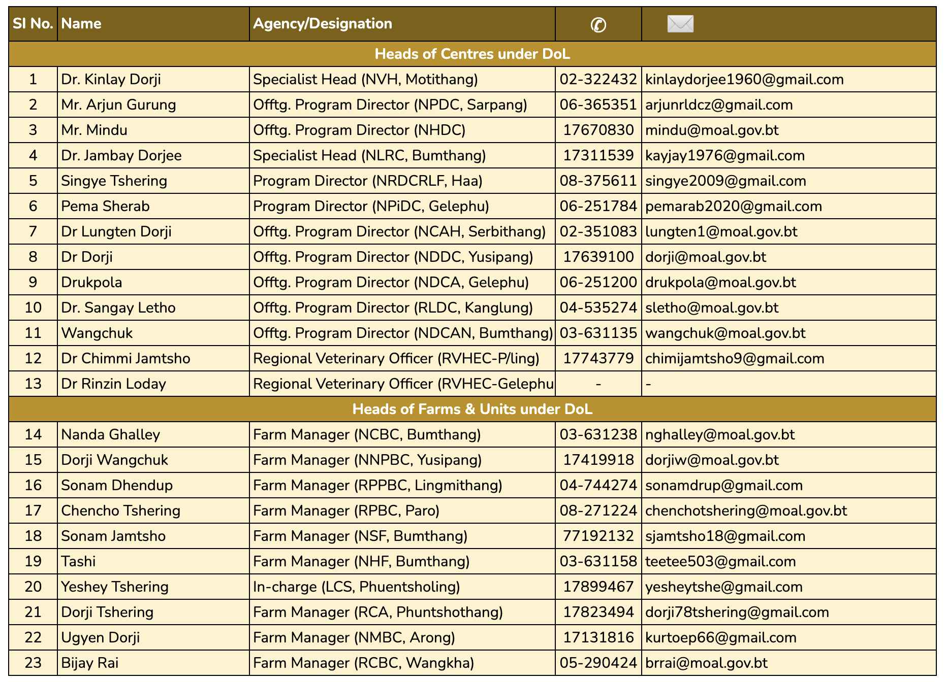 C. Dzongkhag Livestock Sectors
